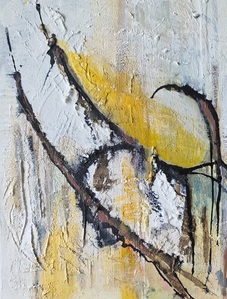 2024start met lijnen, kleur en dan ontwikkelt zich een werk waar ik door verrast wordt